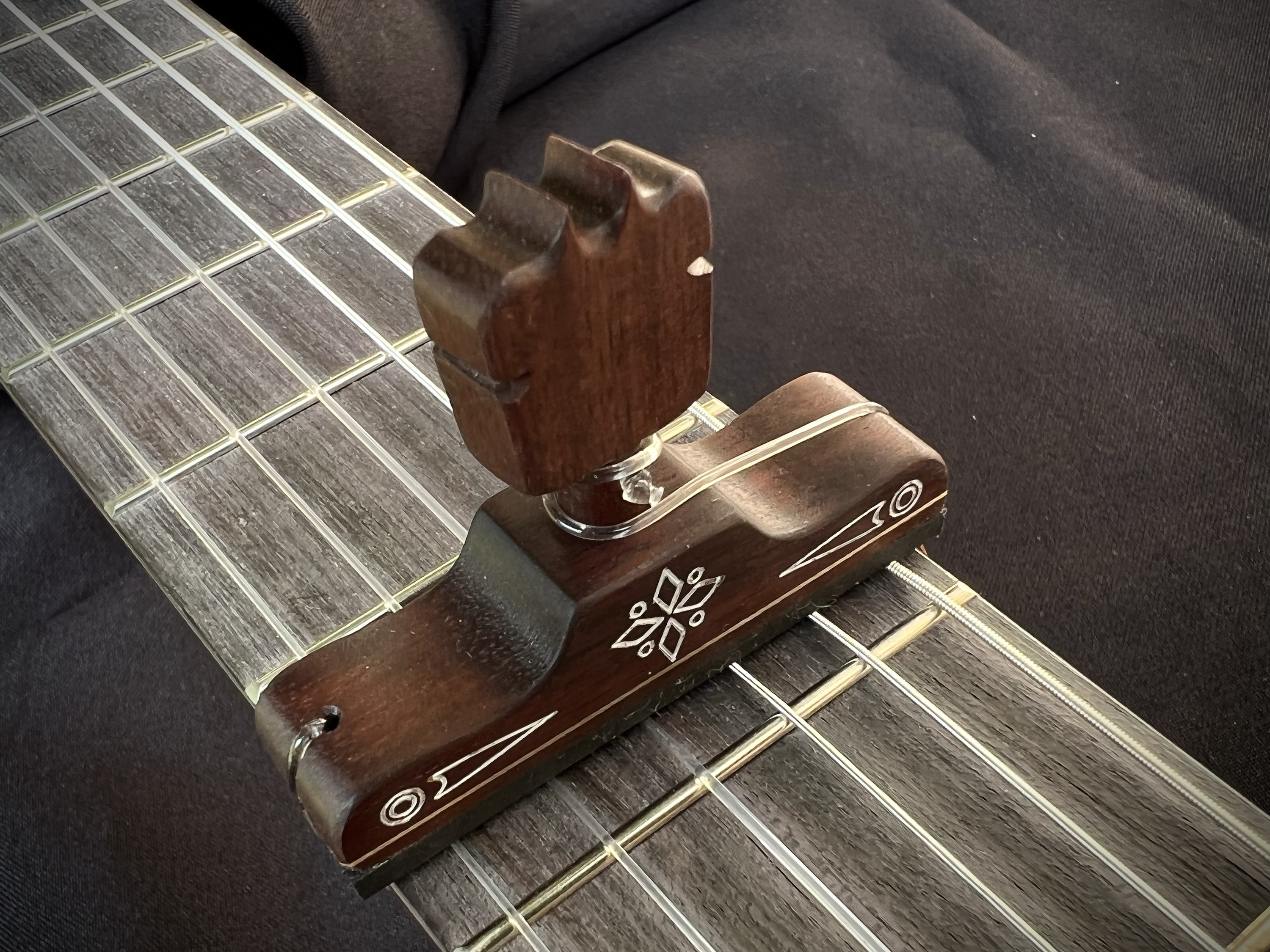The Cejilla Flamenca Artesana Tallada is a traditional handmade accessory, which stands out for its high quality. Designed specifically for the flamenco guitar, this capo is able to provide the perfect tension required on the strings, allowing for an authentic and vibrant sound. Its craftsmanship guarantees a durable and resistant product, ideal for professional and amateur flamenco musicians.
