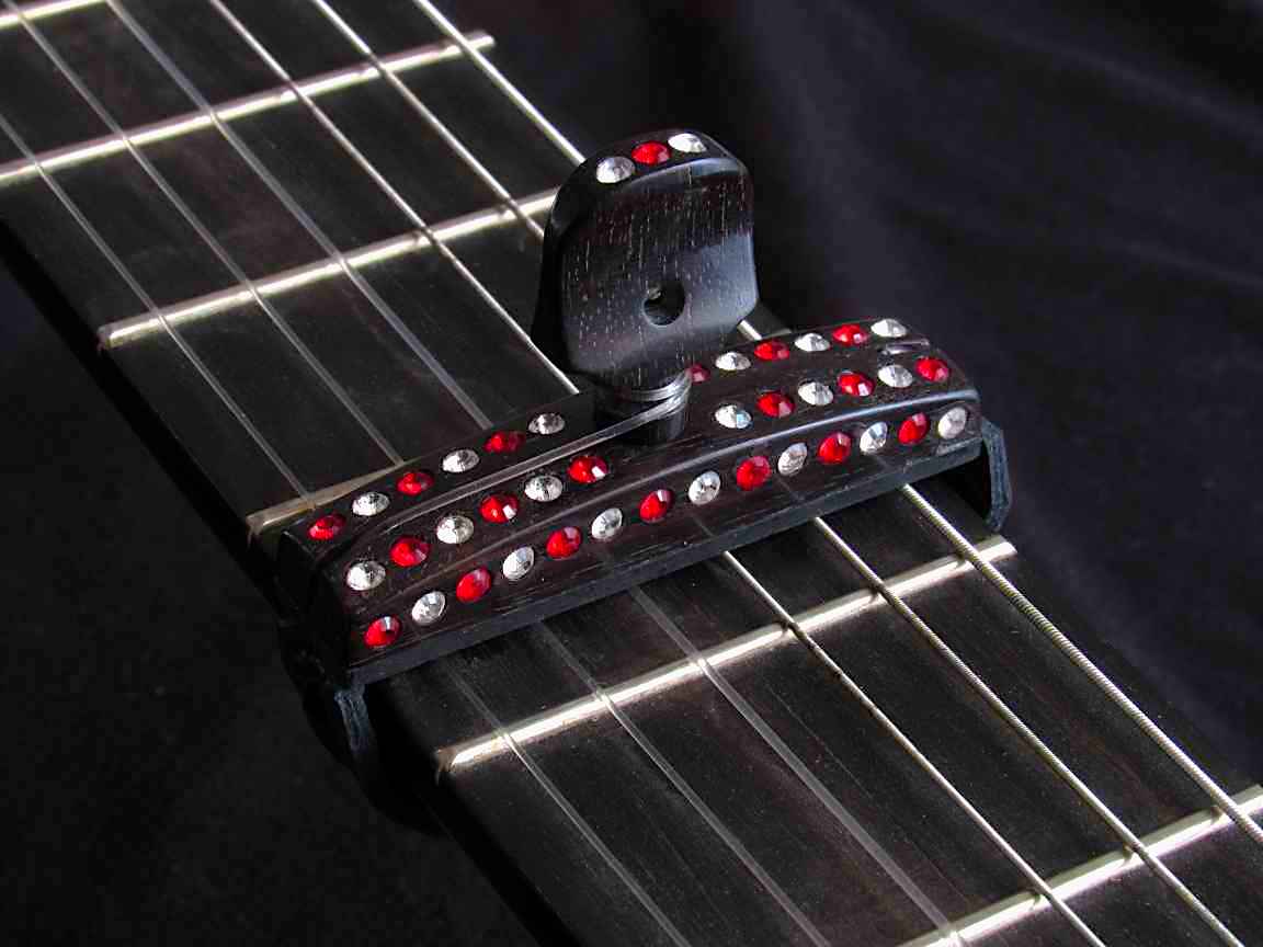 –Materials: African Ebony wood with 52 inlaid Swarovski crystals of the highest quality. Firm hold and perfect fit to the neck of the instrument without buzzing or scratching.