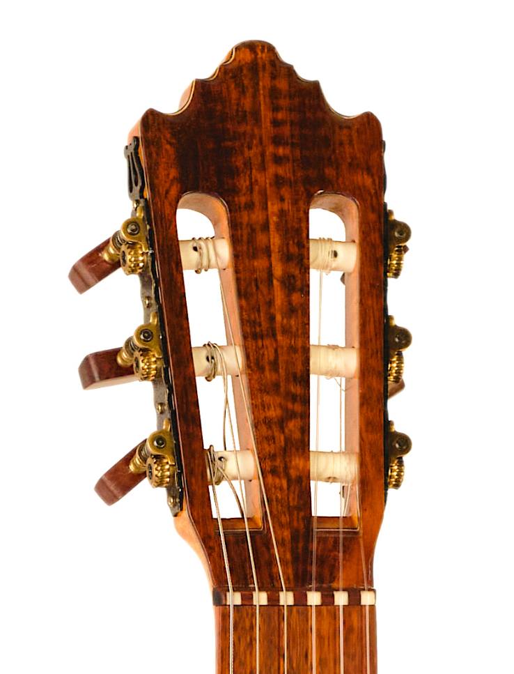 The handmade deluxe headstock gives the guitar an accurate and smooth tuning. The headstock popcorns are made of Snakewood, as well as the headstock headstock.