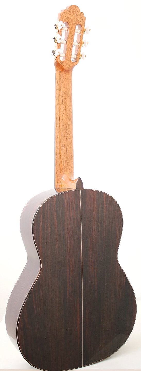 It is an intermediate model of Prudencio Saez guitars. Special attention has been paid to the action of the guitar with the student in mind. The sound is rich, with plenty of volume and very well balanced. The solid Rosewood body gives the guitar good projection and volume and the solid cedar top gives the guitar a professional sound. An easy and comfortable guitar to play.