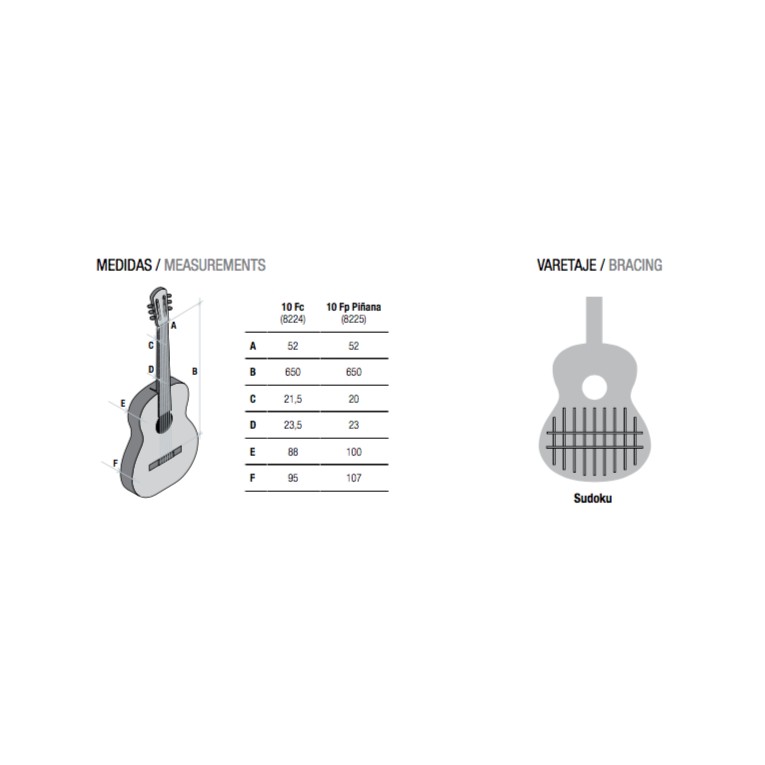 Es una guitarra que rivaliza con modelos de más alto nivel. Incorpora tapa de Pino Abeto macizo, cuerpo de Ciprés macizo, diapasón de ébano y mástil de cedro.
